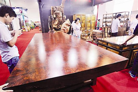 楚天金报讯 图为:花梨木茶桌亮相 (记者万多摄)