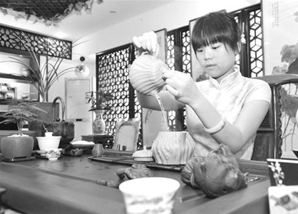 小小紫砂壶缘何能让众多茶友趋之若鹜?记者昨日在硚口一品天下茶市的锦御壹品茶具店找到了答案。“好的紫砂壶不仅能给茶叶冲泡增色,更能陶冶人的情操。”店主朱含君对记者说。