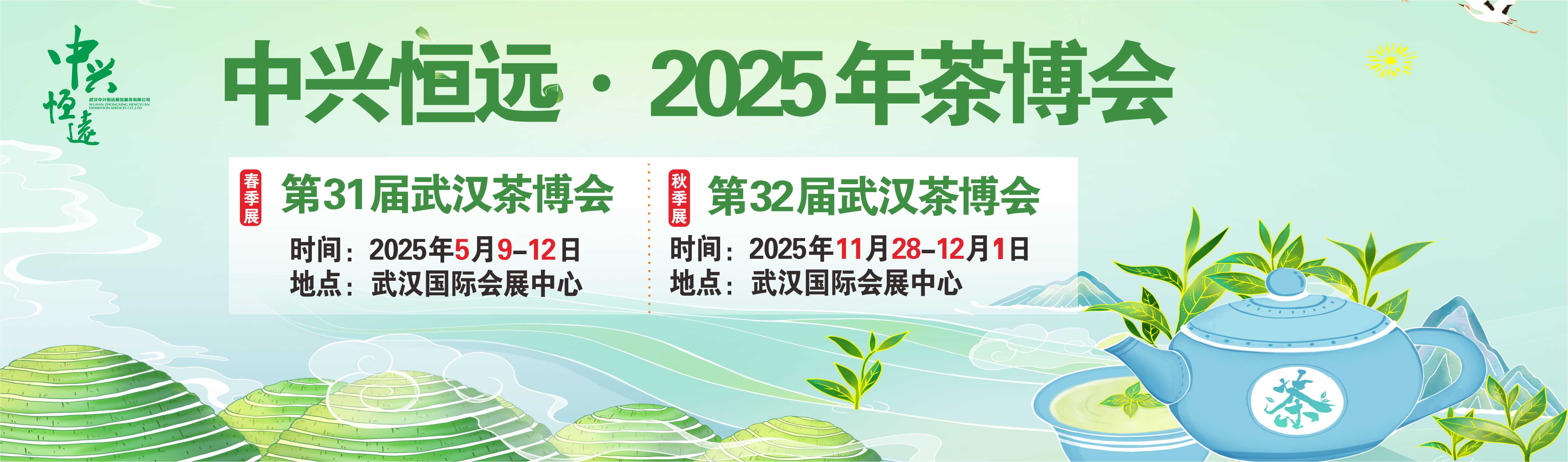 武汉茶博会由本土实力明星会展机构武汉中兴恒远展览服务有限公司主(承)办,创办于2008年,2012年起分春•秋季两季举办。规模逐年扩大,品牌影响力和号召力不断提升,国内外知名品牌纷纷抢滩入展,社会经济效益屡创新高。2015年列入国家商务部引导支持展会名单,2016年列入武汉市“会展品牌提升工程”并荣获会展年度大奖“优秀品牌展会”,成为湖北茶产业发展的“靓丽”名片和武汉会展的示范标杆样板。每年超90%的回头客,用奔跑的速度向世 查看更多>>